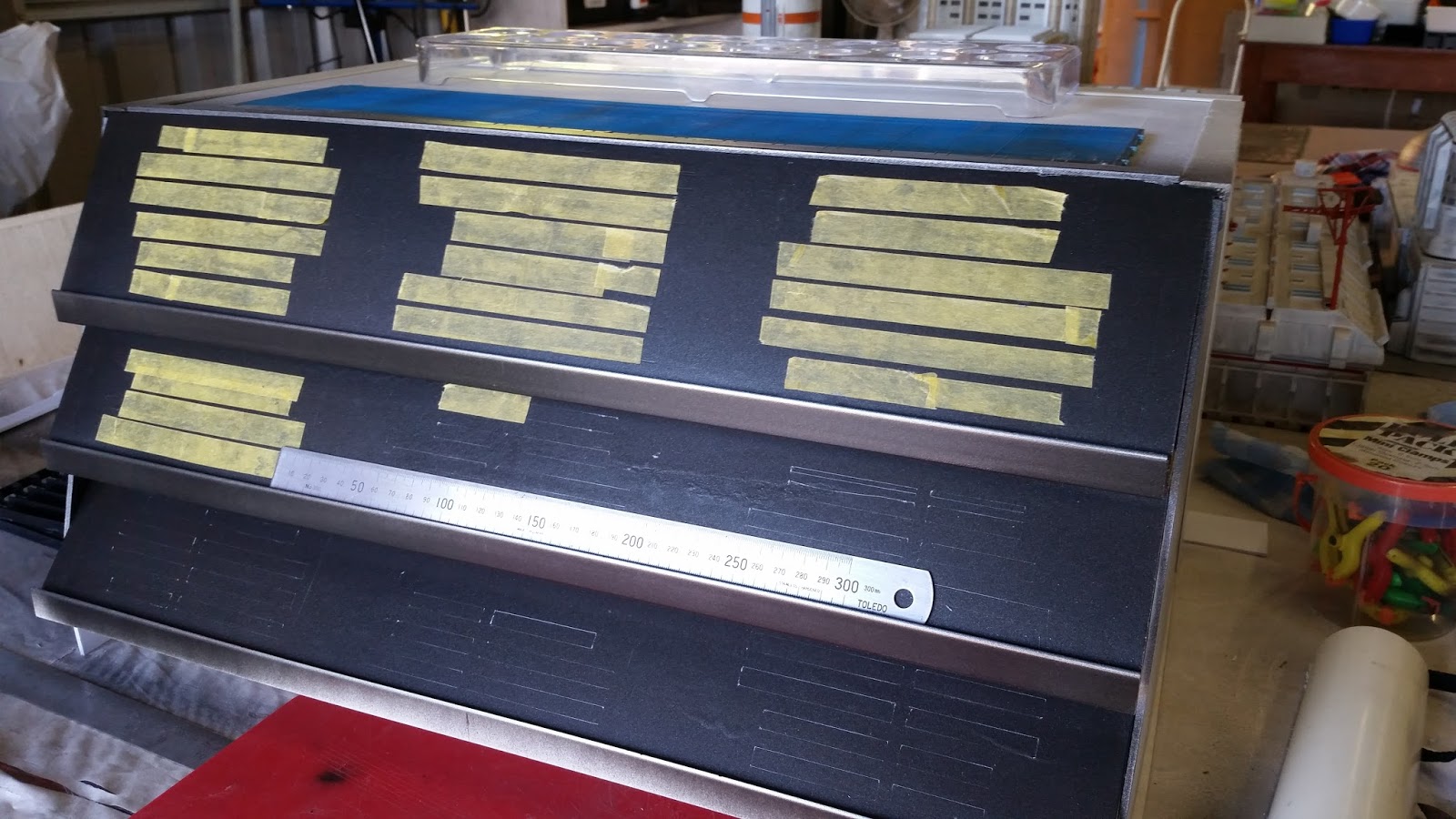 | Primed and ready. The masked off domes were finished, painted and weathered first. |